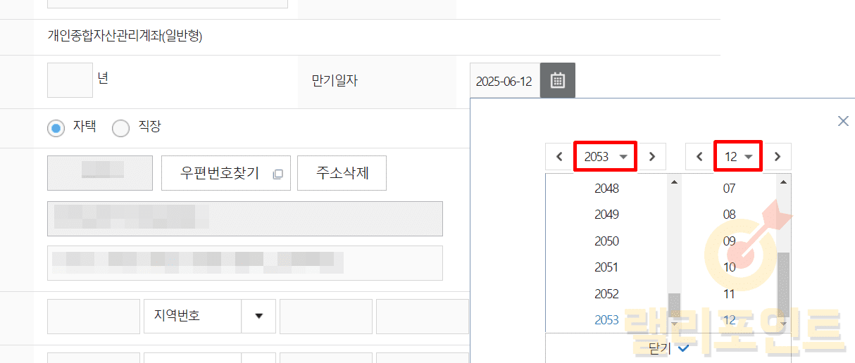 1. ISA 계좌의 만기일을 설정합니다.(년/월/일)