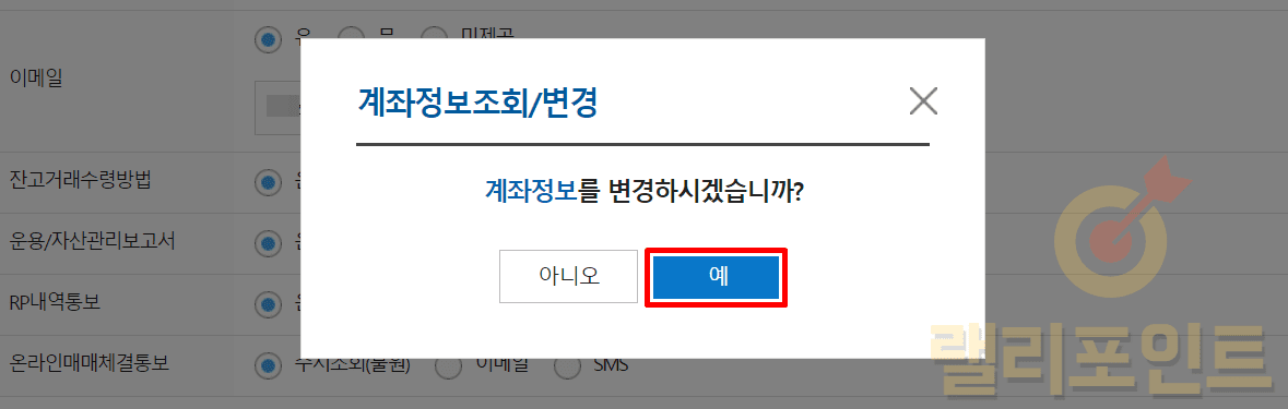 1. 계좌정보 변경 창에서 예를 클릭합니다.