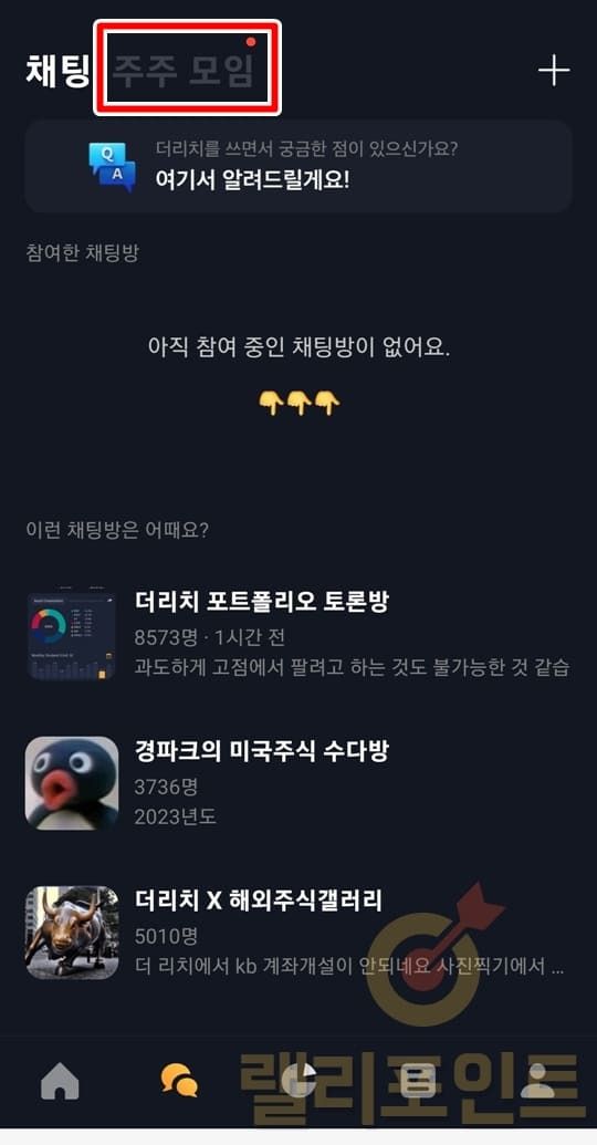 미국 배당주 포트폴리오를 구성하며 투자하신다면 더리치(The Rich) 어플을 이용하고 계실 것입니다. 과거에 비해서 현재는 공동인증서도 필요없이 마이데이터로 증권사를 연동하거나, 주식 거래까지 지원하게 되면서 점차 더 편리해지는 것 같습니다. 그래서 오늘 글에서는 더리치를 더 편리하게 이용할 수 있는 팁으로 더리치 주주 채팅방 나가기 & 주주 채팅방 알림 끄기 방법을 소개드리도록 하겠습니다.