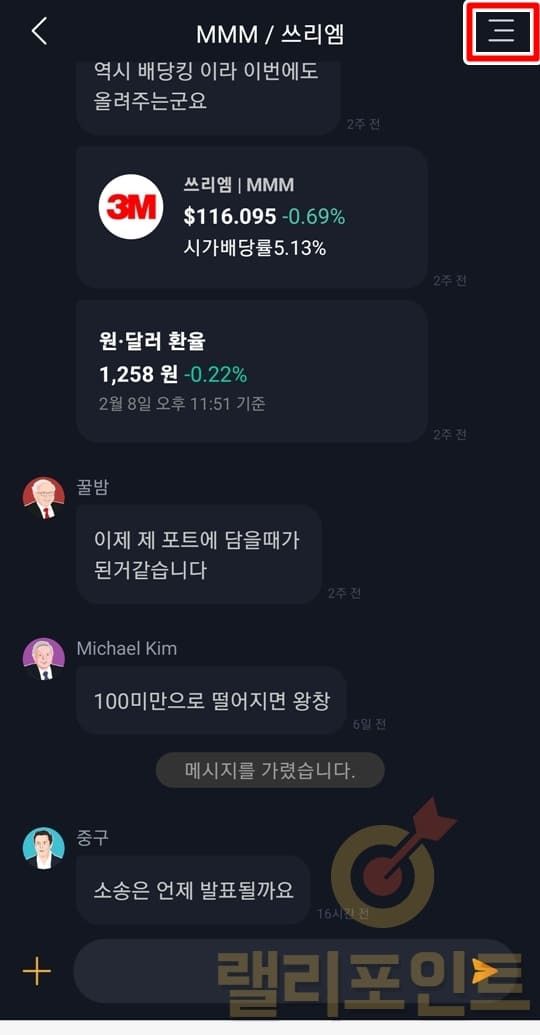 더리치 주주 채팅방 나가기 / 알림 끄기 설정 방법