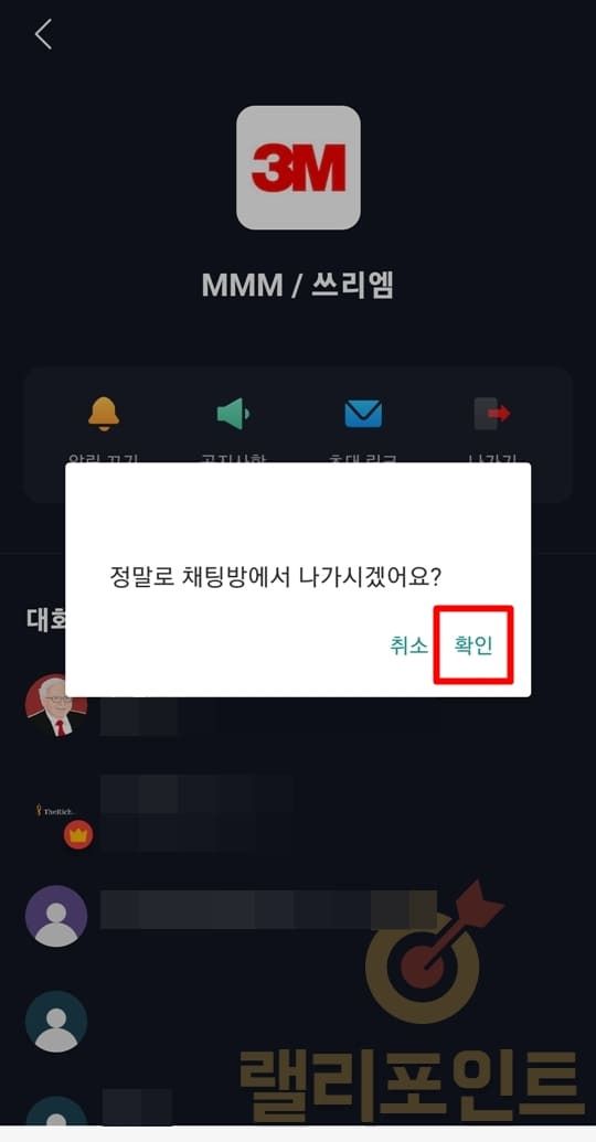 - 탈퇴하고 싶은 주주모임 채팅방으로 들어갑니다.