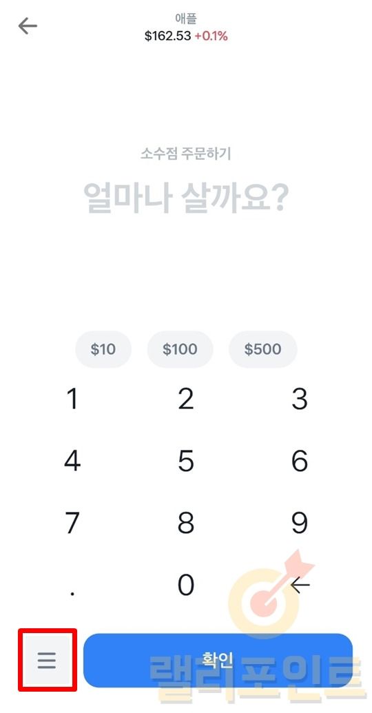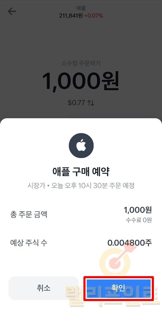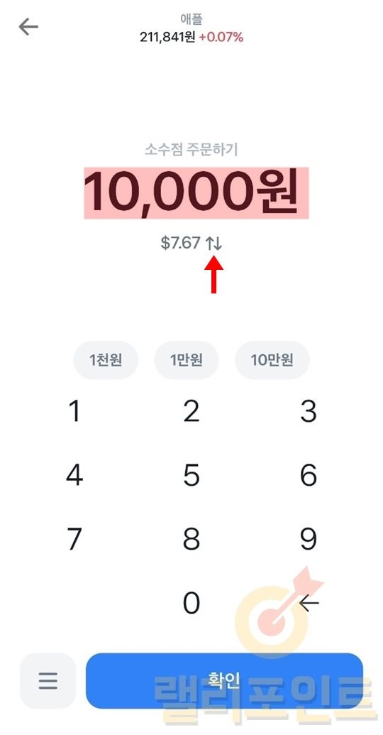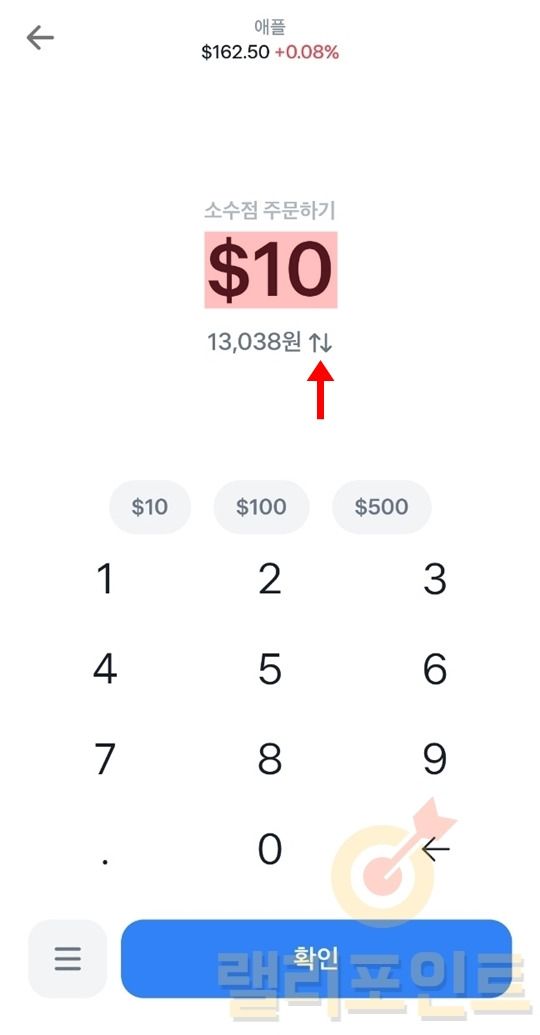 구매하고 싶은 소수점 거래 금액을 입력하고 확인을 누릅니다.