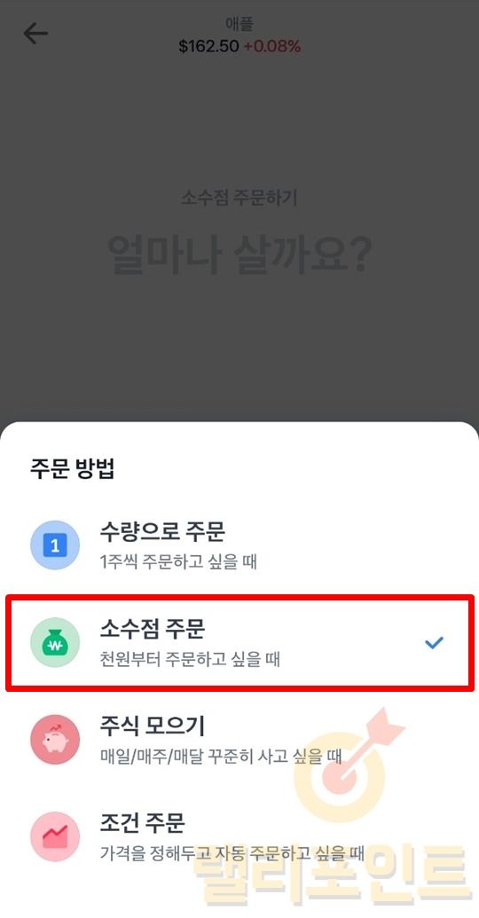 - 소수점 주문을 선택합니다.