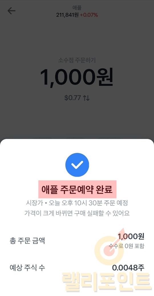 토스 실시간 해외주식 소수점 거래 주문이 완료되었습니다.