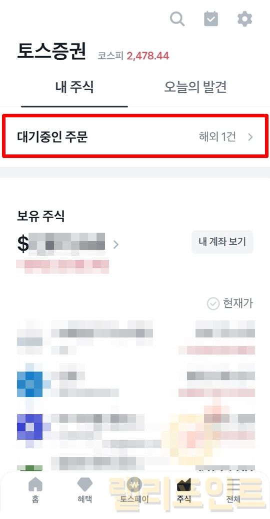 토스증권 소수점 거래 주문 확인하기