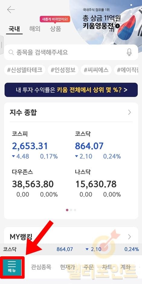 1. 스마트폰에서 키움증권 영웅문S# 앱을 실행합니다.