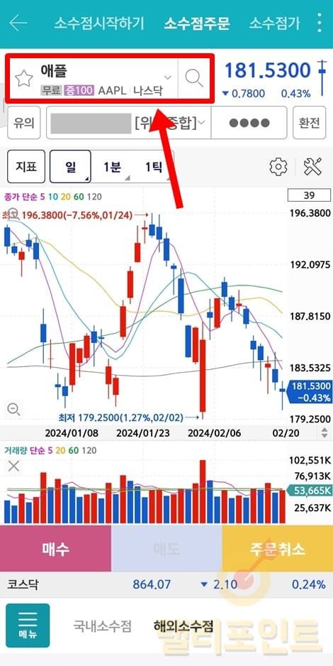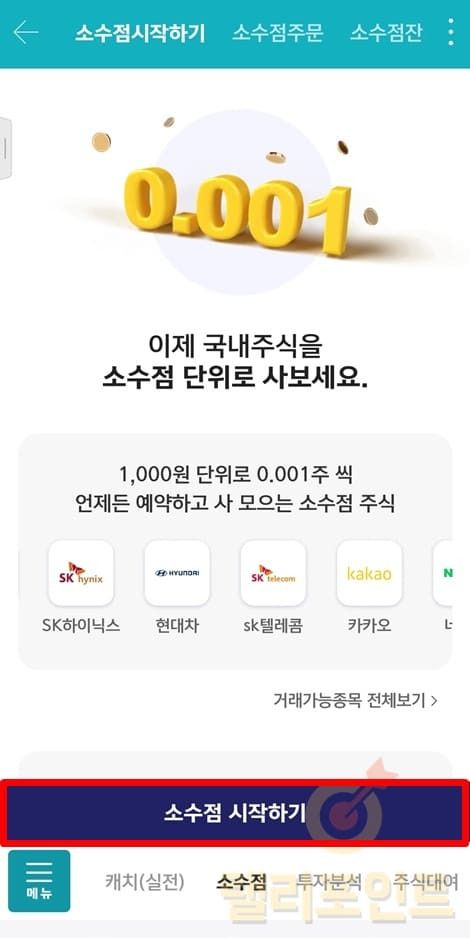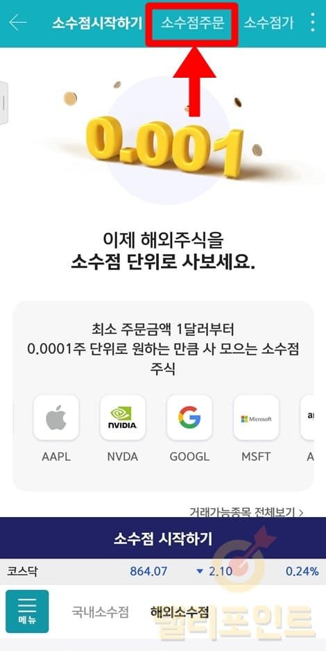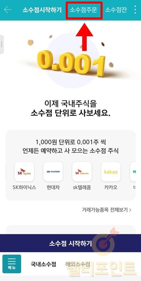 1. 상단 메뉴에서 소수점주문을 누릅니다.
