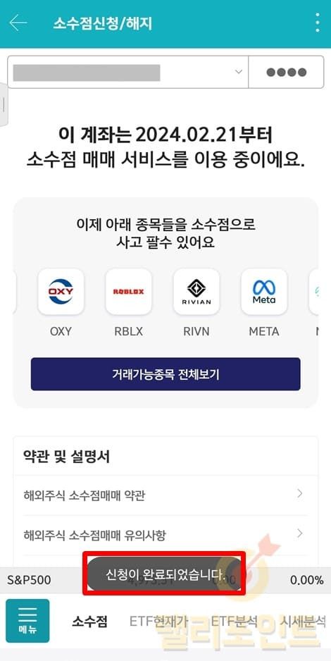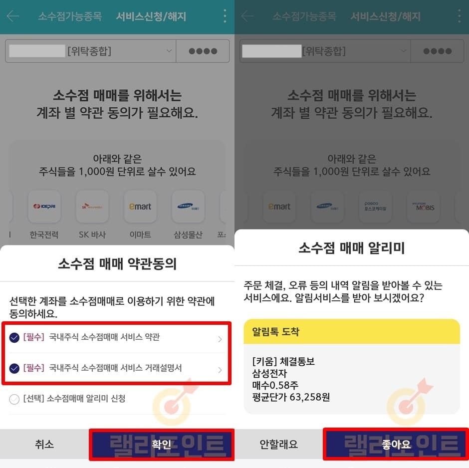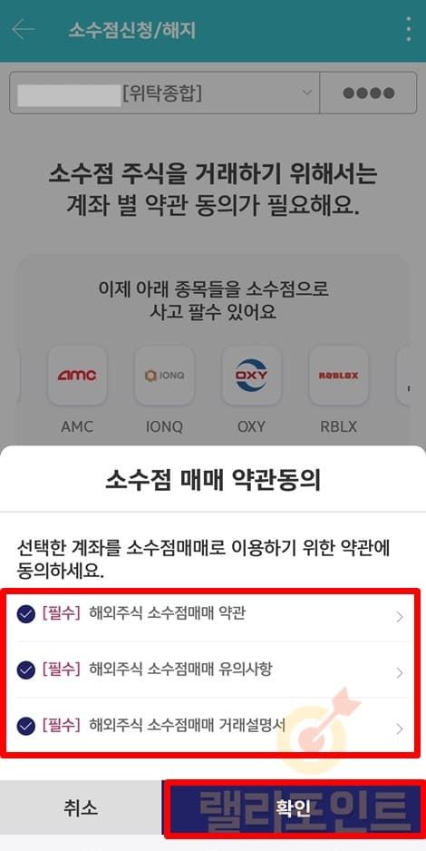 1. 소수점 매매 약관동의에서 필수항목을 모두 체크합니다.