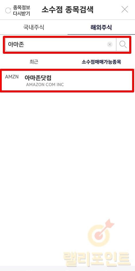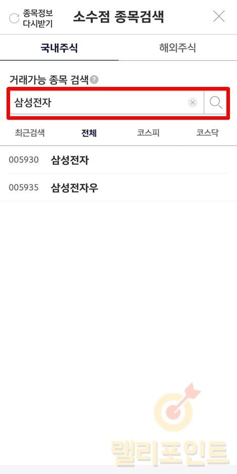 1. 소수점으로 매매하고 싶은 종목을 검색한 후 클릭합니다.