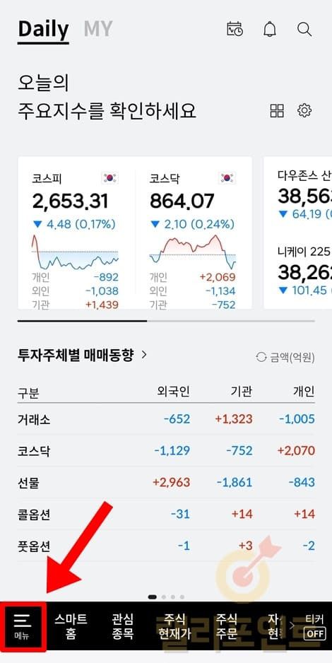 1. 스마트폰에서 한화투자증권 SmartM 앱을 실행합니다.