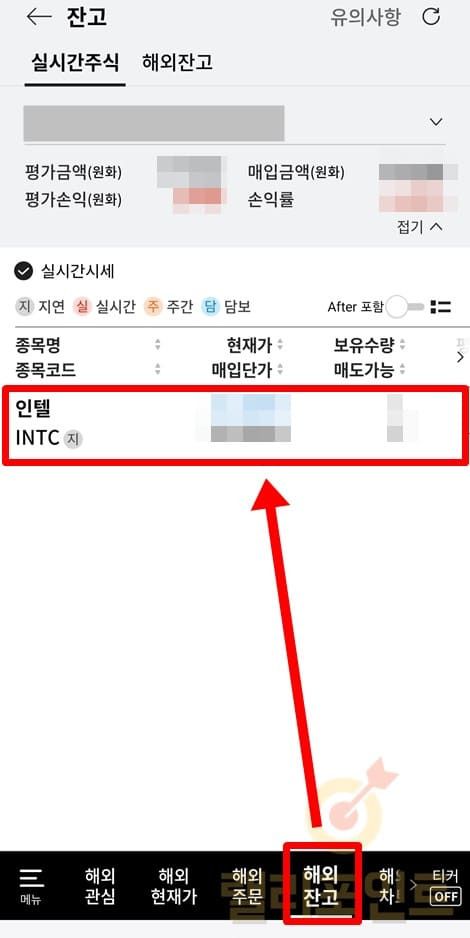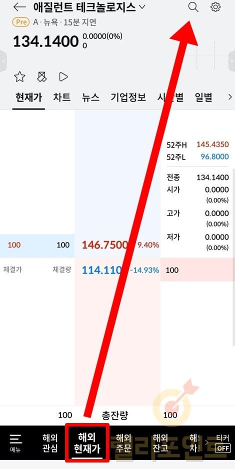 1. 해외현재가를 누르고 상단 돋보기 검색 버튼을 클릭합니다.