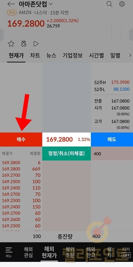 1. 매수하고 싶은 해외주식을 검색합니다.
