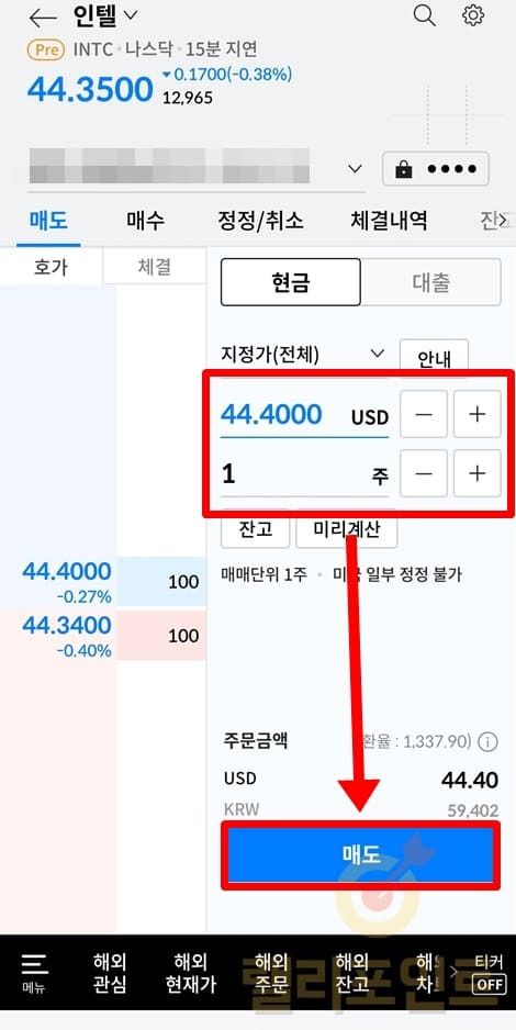 1. 매도하고 싶은 금액과 수량을 기입합니다.